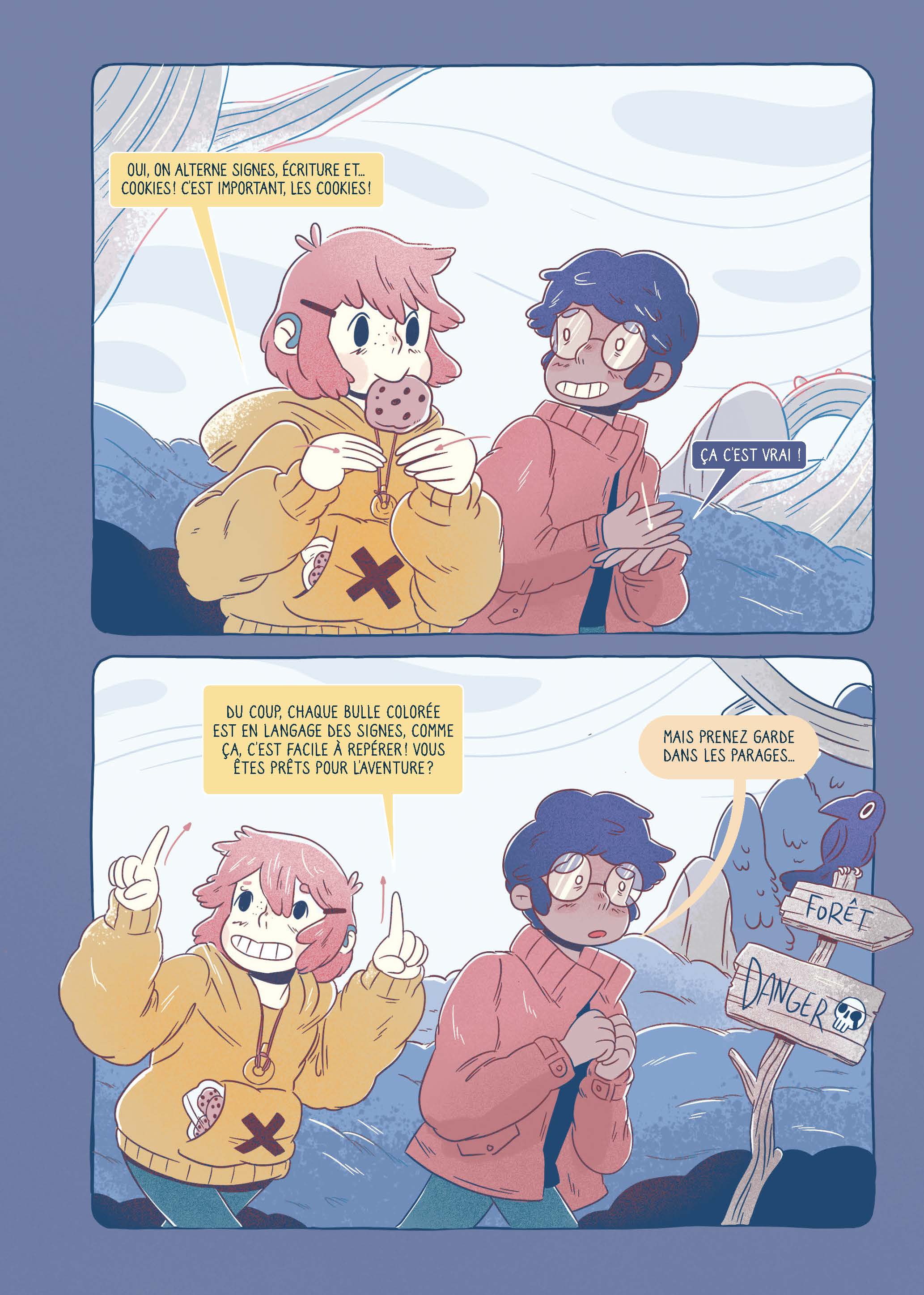 Encensé par l’auteur de Lightfall, cette nouvelle série prévue en trois tomes a de quoi plaire ! Ne serait-ce que par les héros atypiques de “Runes”. Daï est un garçon plutôt introverti, toujours paré de son appareil photo pour prendre des clichés de la Nature. Chiri est sourde de naissance, communiquant donc principalement avec la langue des signes (autant dire que le mélange de la magie des runes et la langue des signes : c’est déjà un combo gagnant pour moi qui pratique l’une et apprends l’autre). Il fallait oser, mais Carlos Sánchez l’a fait avec un certain brio.