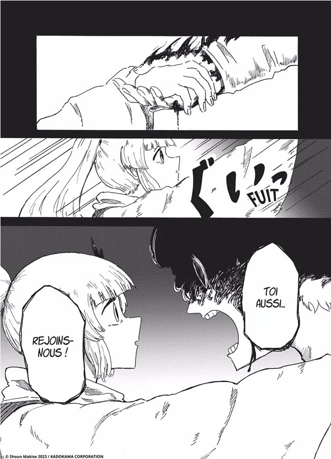 En tout cas, impossible de le savoir dans ce premier tome d’un triptyque que nous pourrions qualifier de gentillet. Le graphisme est relativement minimaliste, avec très peu de travail dans les décors, alors que les montagnes visibles en arrière plan de la couverture sont presque d’une importance capitale. Peu de décor donc, mais quand il y en a, on peut remarquer le talent de l’artiste, ce qui est moins notable dans son charadesign qui, bien que classique, respectant les codes du manga, révèle quelques lacunes (comme les coupes de cheveux qui, personnellement, me dérangent…).