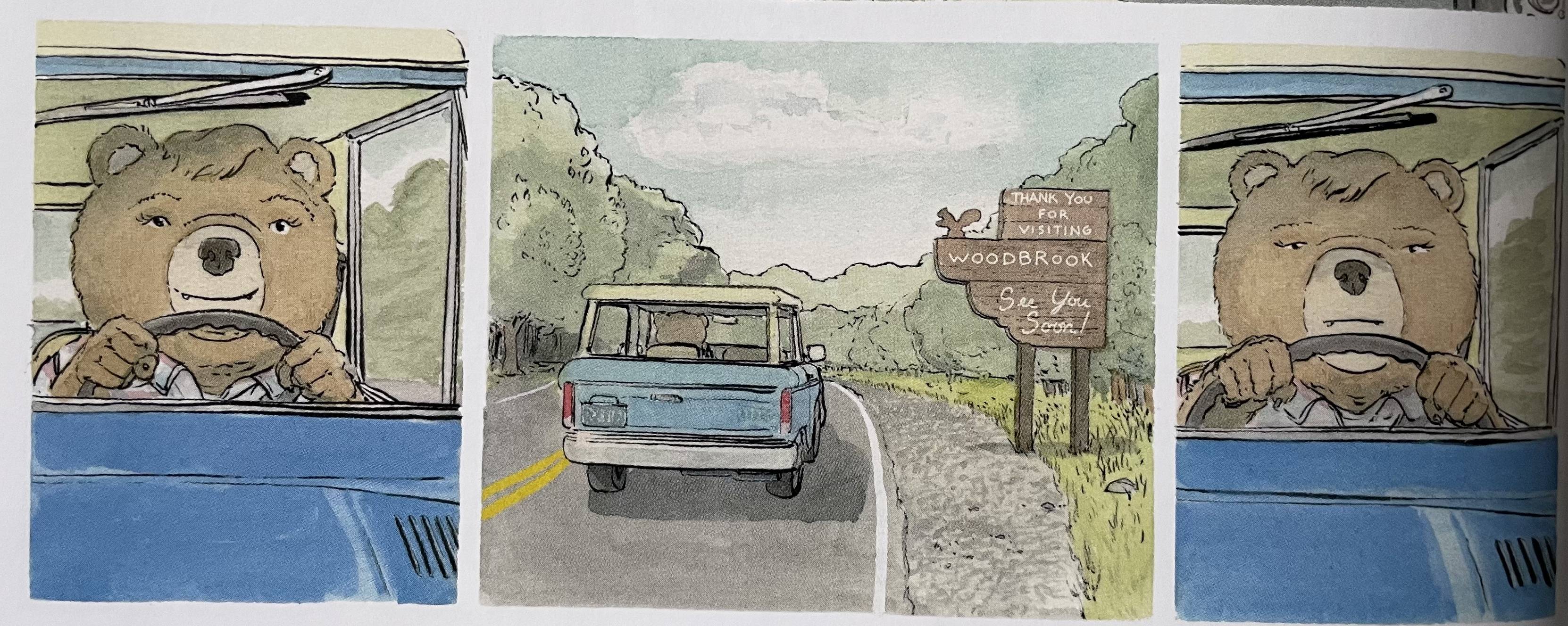 Et puis surtout, ce qui détonne et étonne, c’est ce décalage entre le récit et le dessin. Les personnages anthropomorphes et le style donnent l’impression d’être dans un conte pour enfants illustré par l’illustrateur britannique E.H. Shepard. Le contraste est saisissant et renforce à ce titre le propos et la thématique principale sur l’illusion ou le paraître.