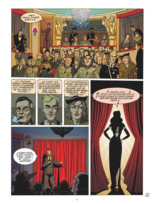 D’un point de vue scénaristique, Noel Simsolo maîtrise plutôt bien son élément, engageant le lecteur d’entrée de jeu à s’immiscer dans ce traquenard de hors la loi, concentrant un éventail de protagonistes de mal lotis. Car en dehors de ce côté glamour et sensuel des cabarets, la vie à l’extérieur, et parfois même en son sein, provoque de telles tensions, que les balles pleuvent et que les lames tranchantes atteignent plus d’une fois une jugulaire qui traîne par là…