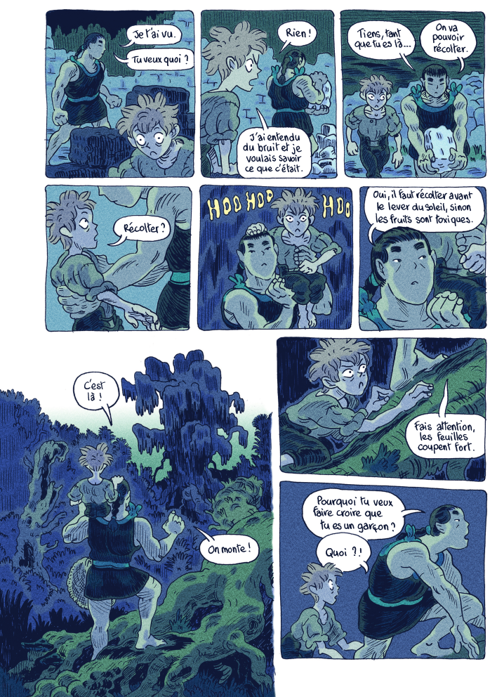 Mais il n’est pas seulement question ici de survie physique. Alouette, c’est un peu comme le Peter Pan de Loisel: l’impossibilité de faire confiance aux adultes, l’omniprésence de la violence et de la misère dominent. La ville apparait comme aussi dangereuse que l’île. Tout le temps sur le qui-vive.