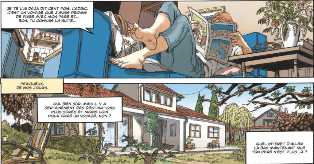 Côté dessin, je vous avoue que j’ai un peu de mal avec certains aspects du travail d’Annabel, qu’il s’agisse de quelques perspectives peu respectées (un comble pour une BD sur la Franc-maçonnerie) ou de sa façon de dessiner les yeux de ses personnages sur des visages vus de trois quarts… C’est parfois assez déconcertant. Pour le reste, certains décors sont très beaux, mais d’autres cases laissent entrevoir un moindre intérêt pour les finitions… Apparemment, dessiner des vélos n’est pas vraiment son truc.