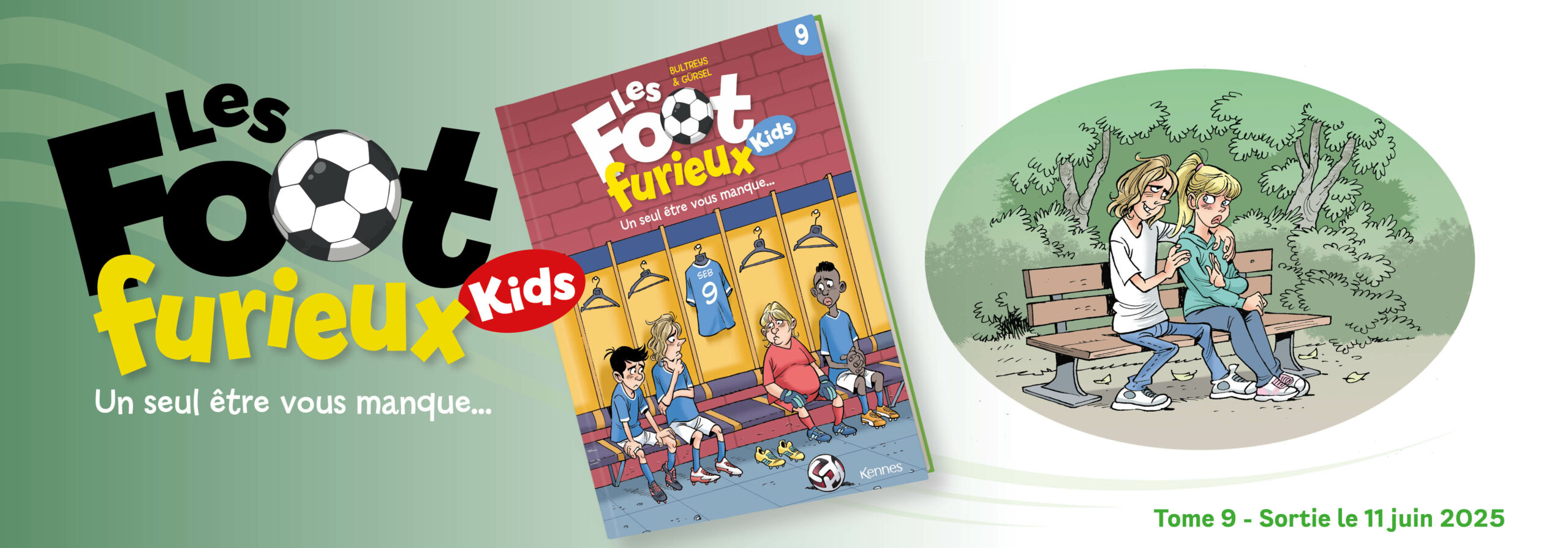 Alors que l’idée première qui vient à l’esprit serait d’assister à une succession de gags comme ceux du Petit Spirou en cours de sport avec le professeur au ventre bedonnant, force est de constater qu’on est loin du compte. “Les Foot Furieux Kids”, c’est avant tout une tranche de vie pour ces gamins qui se donnent à fond dans leur sport, formant une vraie équipe, mais dont les aléas n’en feront sans doute jamais des champions… quoique. Ce neuvième opus offre une chance rêvé à Seb, le numéro 9 (coïncidence ?!), d’intégrer un club célèbre s’il réussit un stage d’une semaine. De quoi perturber son équipe qui voit partir un des leaders du FC Tartempion.