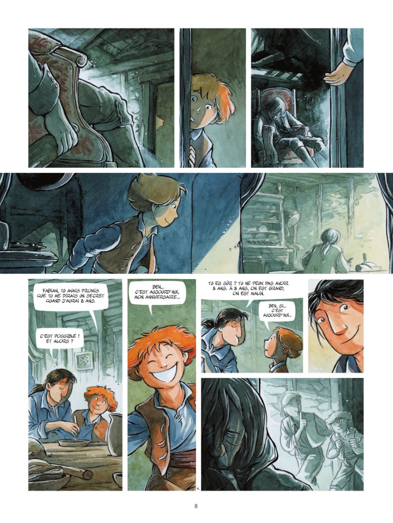 À quelques lieues de là, le père Flanchin, traumatisé par les horreurs de la guerre, vit reclus avec ses fils : Enric et Fabian. L’appel de l’aventure et des grands espaces se fait irrésistible pour les deux frères, qui décident de fuir la tyrannie paternelle. Sous l’œil féroce de l’enquêteur du roi, le père se lance sur leurs traces. Elles les mèneront droit vers les sommets immaculés et se mêleront vite à celles d’un ours et d’un Indien…