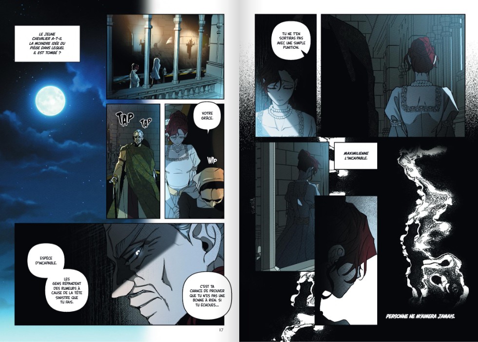 Le contexte semble tellement riche, avec un lexique à la fin de ce volume qui reprend l’histoire de cette contrée, les différentes factions armées, les créatures légendaires, … qu’on peut espérer davantage et confronter Maximilienne, ainsi que Riftan son époux, à bien d’autres défis d’envergure. Alors, affaire à suivre…