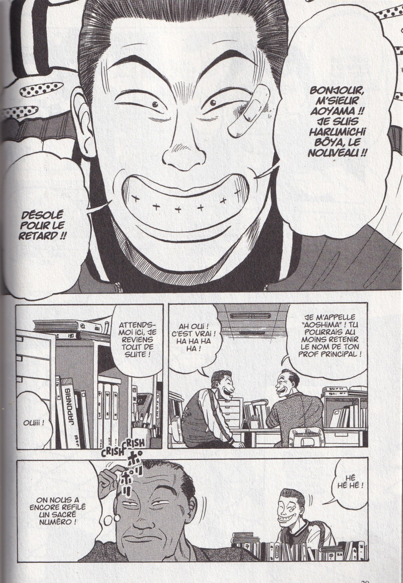 Ce premier jet de deux tomes se veut être d’une force rarement atteinte en matière de baston entre lycéens. On comprend aisément la toute puissance des années nonante (quatre-vingt-dix pour nos amis Français) où les auteurs se lâchaient plus que de nature.