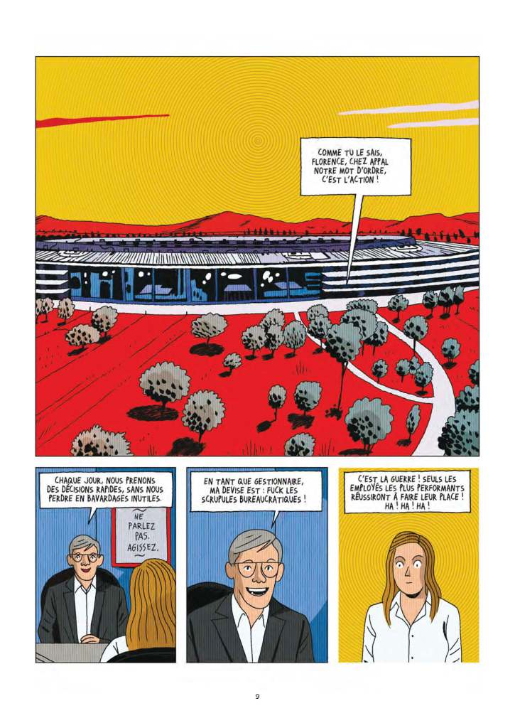 Un bon point pour le dessin donc mais je dois avouer que j ai eu un mal fou à terminer cette BD. Le mieux est de le lire par chapitre pour emmagasiner toutes les informations reçues sinon ce sera l’indigestion si vous n’êtes pas un économiste ou un(e) DRH.