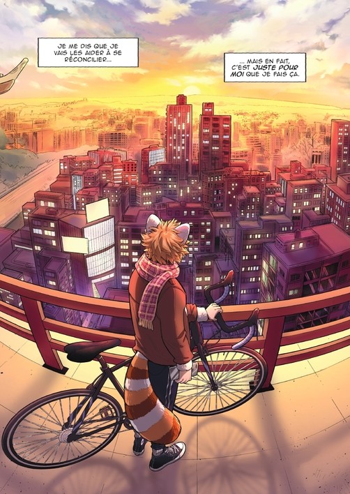 D’autant que graphiquement, si les personnages ont l’air plus jeunes que ce qu’ils sont : le rendu de Lidia Bolognini est définitivement captivant. Les regards des personnages sont deux perles envoûtantes à chaque page, l’hybridation humain/animal apporte tantôt une pointe de candeur, tantôt un aperçu visuel d’un trait de caractère : Awarè étant aussi doux et attachant que sa partie panda roux. Et les couleurs, à la fois chaudes et naturelles, entre pastelles un peu pâles et lumières vibrantes face à la beauté des décors : voilà de quoi achever d’amadouer les lecteurs nostalgiques d’un temps révolu.. mais est-il perdu pour autant ? Enjoy ~