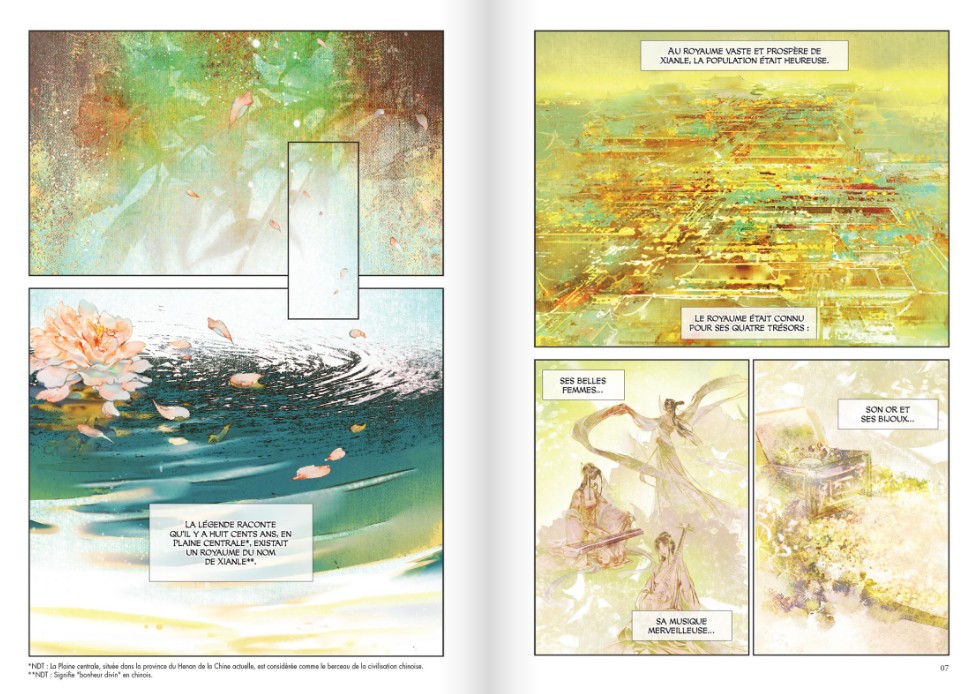 Dans ma liste d’animés à regarder depuis belle lurette, voilà que le premier tome sort chez Delcourt. De quoi découvrir la genèse de cette série phare imaginée par Mo Xiang Tong Xiu. D’emblée, dans un style qui fait penser à un rouleau antique de peintures asiatiques peintes par STARember, on plonge dans une légende qui pourrait faire pâlir celle du roi Singe en Terre du Milieu.