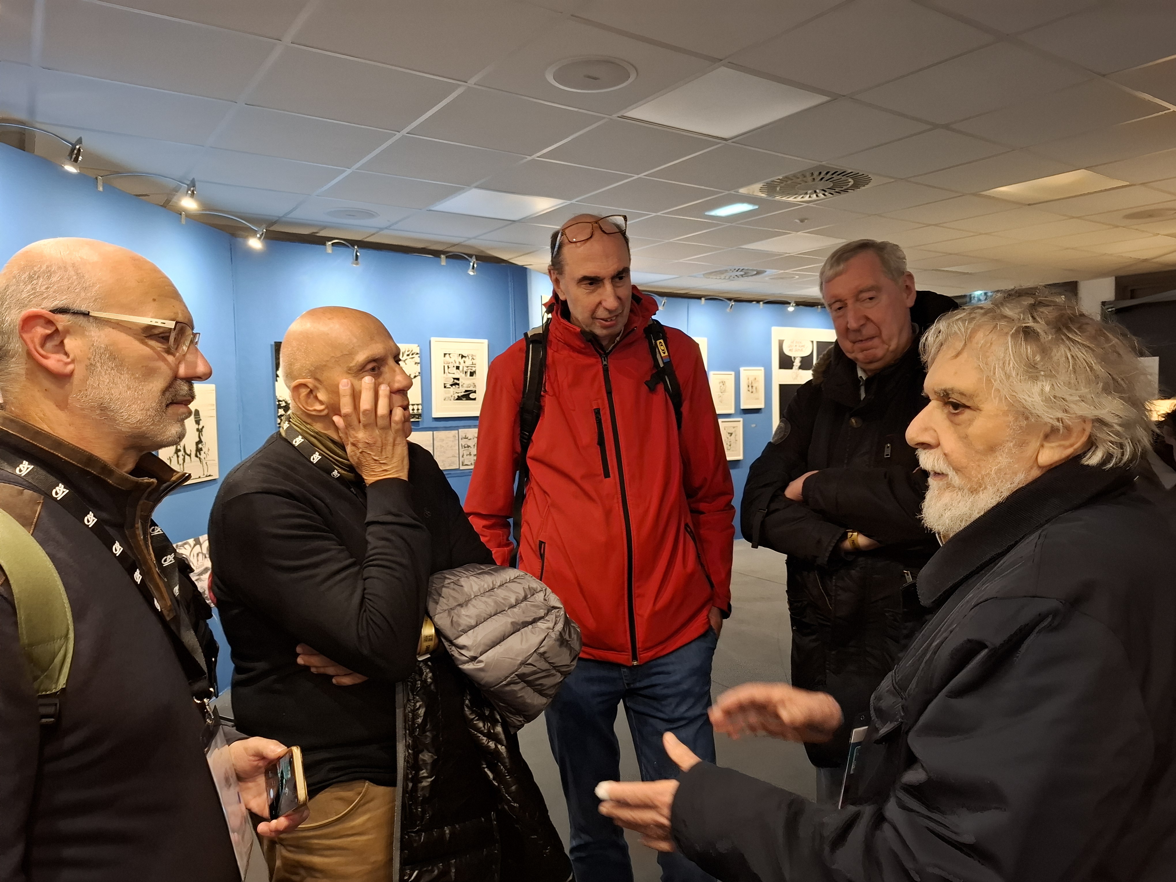 Rencontre unique, il y en eut une belle. Lors de la visite de l’expo Franquin, nous voyons soudainement et discrètement apparaitre derrière nous, un vieil homme barbu qui s’avance, un grand sourire aux lèvres. C’était Jean-Claude Fournier, disciple puis successeur de Franquin sur Spirou. Un grand nom de la BD !