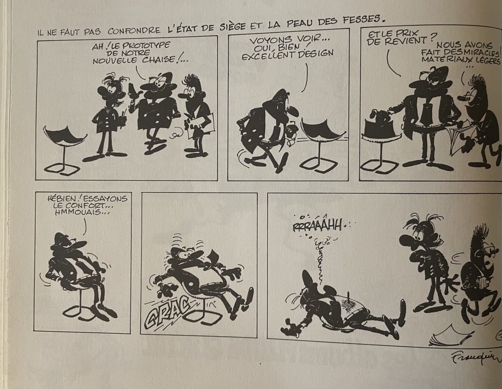 C’est dans le trombone Illustré que paraît la première idée noire. Puis, après 30 numéros, Gotlib a su convaincre Franquin de rejoindre l’équipe de Fluide Glacial où il y est resté 7 ans.