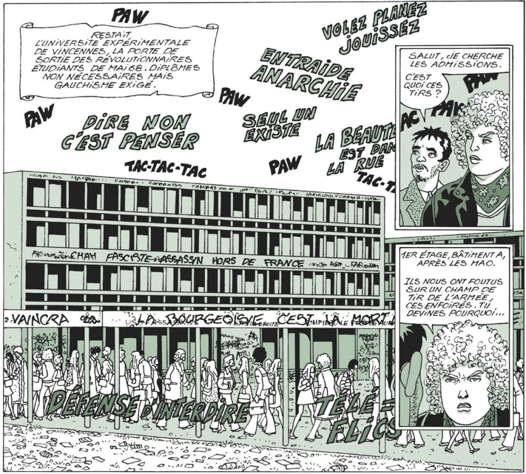 Alors, certes, c’est un ouvrage plutôt destiné aux amateurs de BD dotés d’une certaine culture sur l’histoire contemporaine du 9ème art, tant on y croise des figures et des évènements ou anecdotes qui ont « fait » l’histoire de la BD franco-belge de ces 50 dernières années, mais pas que. En effet, les moins informés (dont je fais sans doute partie) pourront se consoler en appréciant le côté Rastignac du petit provincial qui « monte » à la capitale pour essayer d’y vivre de son art. Ou encore, l’humour omniprésent, preuve d’un certain recul, quant aux situations vécues dans ces années rebelles post 68, notamment à la fac de Vincennes.