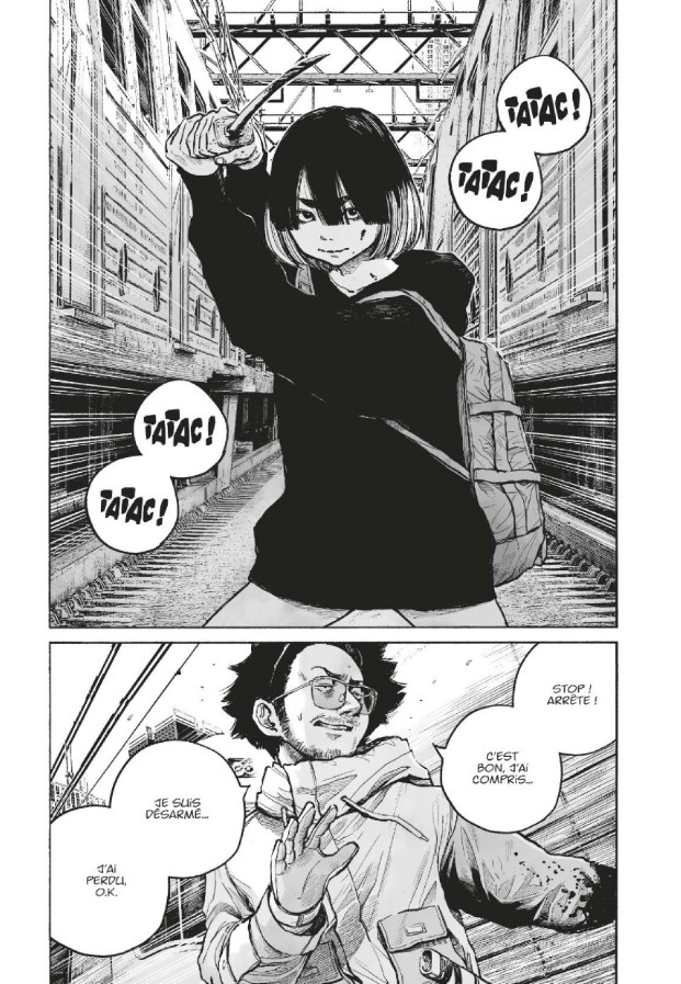 Bref, ces gamins faisant partie du groupe Mujina, disposent d’un sens affuté de l’exécution, sont agiles comme des singes, vifs comme l’éclair, mais surtout audacieux comme sous l’effet d’un sacré remontant ; parvenant (presque) sans peine à occire des adultes costauds, des malfrats de la pire espèce.