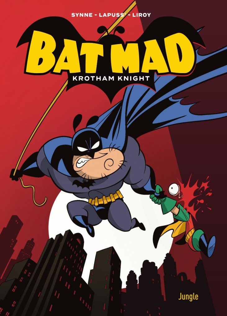 Et pourtant : voilà qui met “Bat Mad” en bonne place dans la catégorie “lecture pour WC” avec un Batman, renommé Batmâle, qui s’avère un homme comme les autres, avec ses hauts, ses bas, les aléas de la vie qui ne lui épargnent rien, pas même la loi de Murphy, ni des coéquipiers en intérim, parce qu’on ne trouve pas de second aussi facilement que ça à Krotham city, et qu’on a tendance à faire appel aux justiciers pour tout et n’importe quoi... même un (putain de) chat coincé dans un arbre !