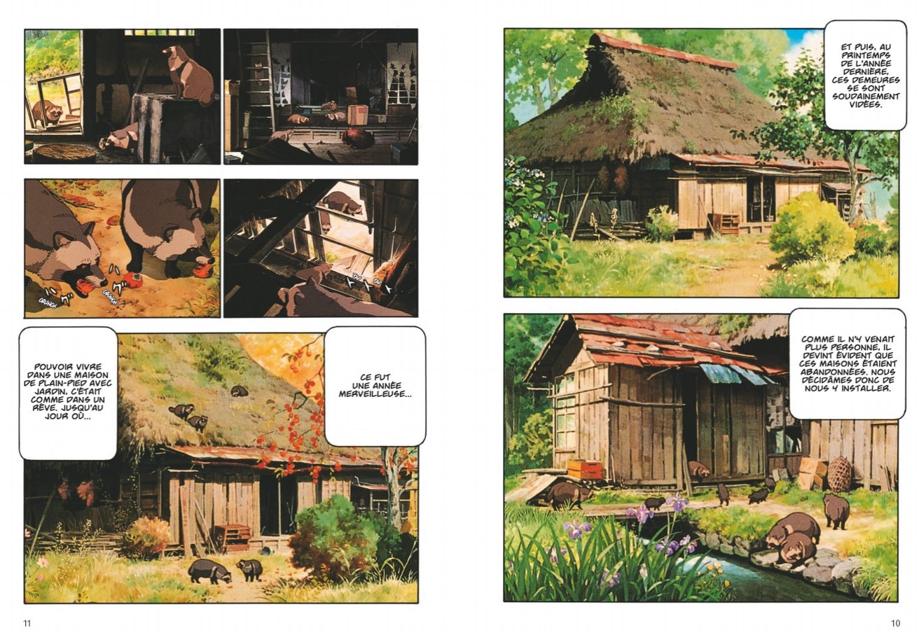 Alors on pardonne quelques scans un peu pixelisés car finalement : ce pavé de 640 pages donne une seule envie : visionner l’animé ! Tout aussi déroutant, surtout à cause des chansons des Tanukis, mais qui mérite d’être vu et apprécié pour sa qualité graphique, son scénario et ses décors, ainsi que ses tranches de vie, notamment animales, somptueux, comme une carte postale ou un documentaire bucolique. Enjoy ~