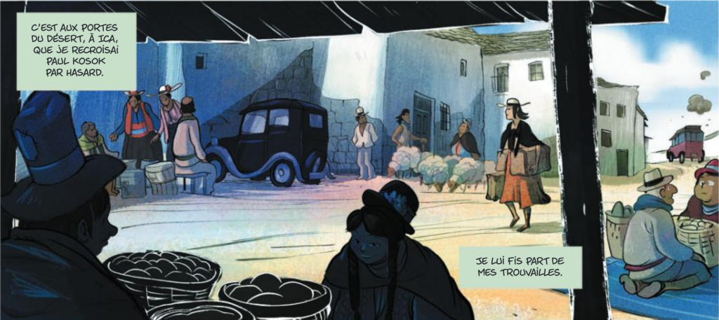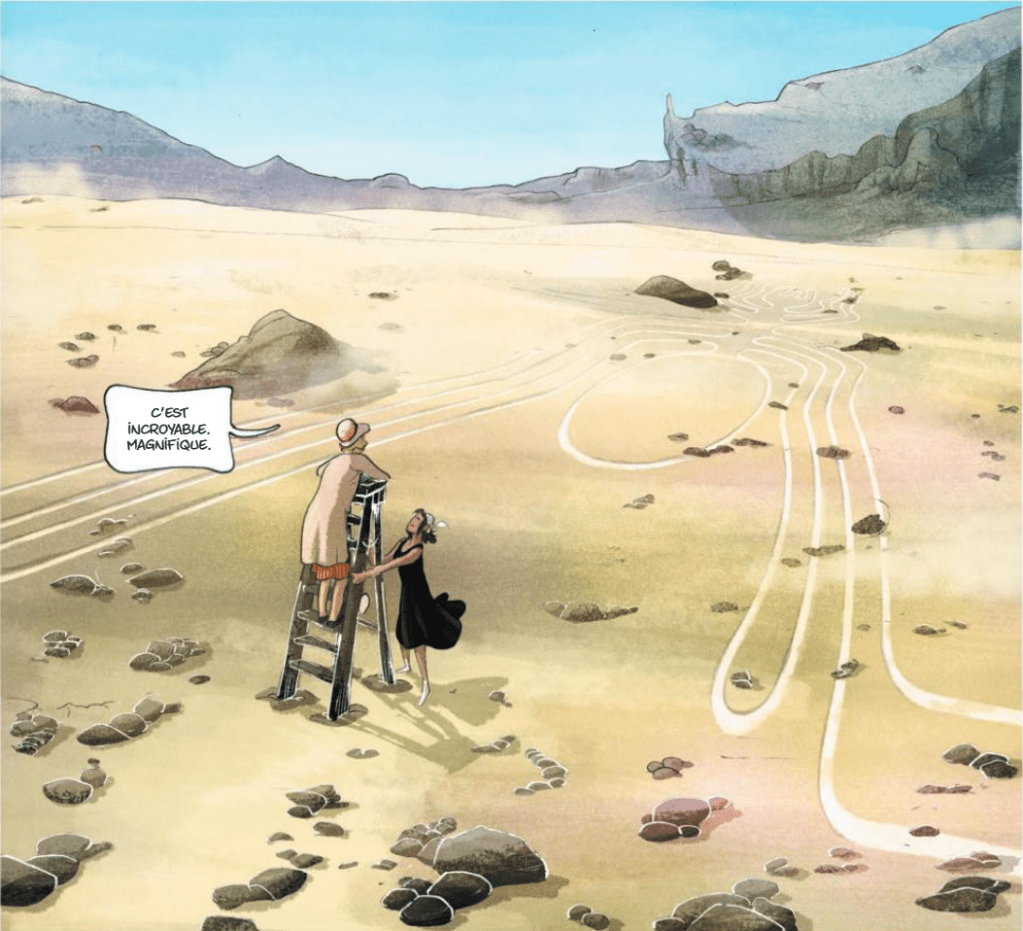 En effet, entre le recensement des innombrables lignes et figures qui peuplent le site exceptionnel du plateau de Nazca et, surtout, la défense de ce patrimoine inestimable contre la prédation agricole d’un grand propriétaire terrien du coin, on peut dire que Maria Reiche a eu une vie non seulement très bien remplie, mais aussi essentielle. C’est d’ailleurs l’un des thèmes de cette histoire : trouver sa place, son rôle, à son échelle, dans l’histoire de l’humanité… Bon, pour Maria, je crois que c’est plutôt pas mal…