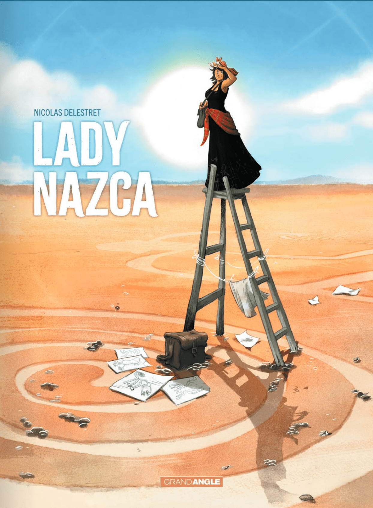 Pour qui s’intéresse un peu à l’archéologie précolombienne du Pérou, en gros la plupart des touristes qui visitent ce magnifique pays, pendant la durée de leur séjour, le nom de Maria Reiche résonne aux oreilles un peu comme celui d’Hiram Binham, le « (re)découvreur » des ruines du Machu Picchu. C’est-à-dire qu’on en a entendu parler, on a lu quelques notes résumant sa « découverte » et, surtout, sa défense des géoglyphes de Nazca, mais, en général ça s’arrête là. On peut dire que cette bande dessinée (qui sort à peu près en même temps qu’un film inspiré du même livre) permet d’aller plus loin et de vraiment comprendre ce qui s’est joué dans les années 1930 et 1940 autour de ces fameuses lignes et de leur préservation.