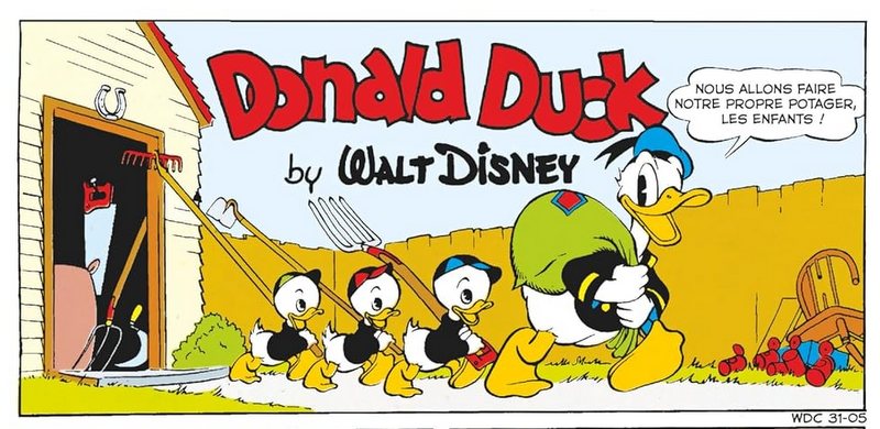 Contenu V.O de ce tome : (Une petite poule avisée – 1934 par Al Taliaferro), (Des couacs et des crôôôas – 1943 ; Pique-nique et patatras – 1947 ; Charivari en délire – 1950 par Carl Barks), (Trou de Mémoire – 1976 par Giorgio Cavazzano) et (Le Grand Eternuement – 1980 par Freddy Milton).