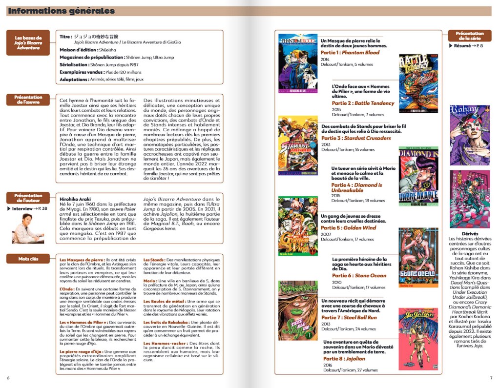 Comme pour JOJO magazine, on est sur du mook traduit, techniquement cette version VF reprends celui sorti chez Arukikata en ~07/2022. Pas de partie Hawaï avec The JOJOlands donc, on s’arrête à Jojolion.