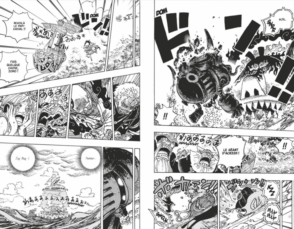 Tandis que le message de Végapunk secoue le monde et que les pirates exultent, Chapeau de paille et ses camarades tentent d’échapper aux attaques incessantes des cinq doyens. Parviendront-ils à quitter sains et saufs l’île futuriste ?!Les aventures de Luffy à la poursuite du One Piece continuent !