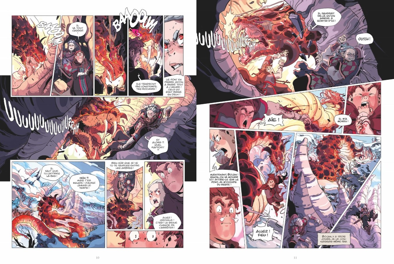 Rien que cette mise en bouche à de quoi nous mettre en appétit et hors d’haleine. Aucun temps mort dans le scénario de Jérôme Le Gris qui jongle avec la mythologie nordique, un certain bagout plus contemporain aux jeunes d’aujourd’hui et les astérisques quand il utilise des mots typiquement scandinaves. Skara le dit elle-même : “En vrai, elle est trop belle, Rùna. Mais comme elle parle tout le temps comme une charretière, ça fait bizarre.”, mais on s’y fait car mine de rien : les personnages sont attachants…