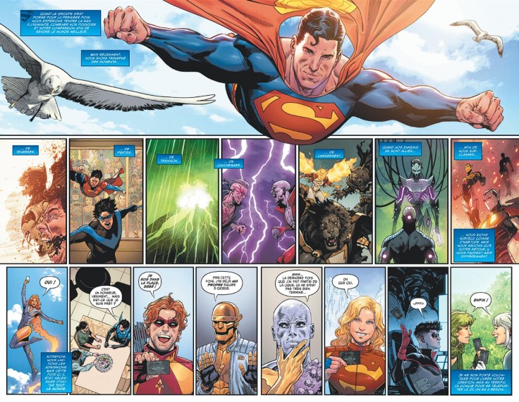 Nous voilà donc post Absolute Power, la Justice League illimitée en VF se forme comme si de rien n’était, ouvre ses portes à tout super héros qui en fait la demande et cherche un Darkseid ne répondant plus à l’appel du prof en début de cours. Personnellement, membre de la JLA je ne m’inquiéterai pas sans nouvelles de Darkseid, mais visiblement à la JLA illimitée il faut bien occuper ses journées. Une aventure qui sert d’amorce au cycle Absolute (Batman, Wonder Woman, Flash, etc.) qui rebat les cartes de chacun des héros habituels de chez DC, un Bruce sans le sou, une Diana des enfers, tout ça tout ça.