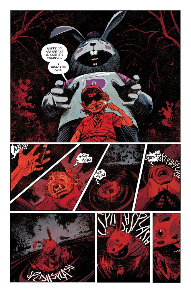 La fรชte d’Halloween prend une tournure dramatique ! Craig et Jason, sans le savoir, font du porte-ร -porte avec le plus jeune tueur de l’annรฉe. Un score รฉlevรฉ pour G4m3r_K1d signifierait une nuit cauchemardesque pour tous les autresโฆEt, sachant qu’il se sert d’un drone tueur, personne n’est ร l’abri ! Nous assistons ร plusieurs combats entre tueurs de la Congrรฉgation: Layla Blaze incendie ร tout va, Rascal Randy, le tueur en sรฉrie dรฉglinguรฉ, au costume de lapin, fait des siennes et Foxmask Killer, la tueuse au sabre, affronte Lone Gunman, l’ancien militaire… Sang et baston ร chaque page.