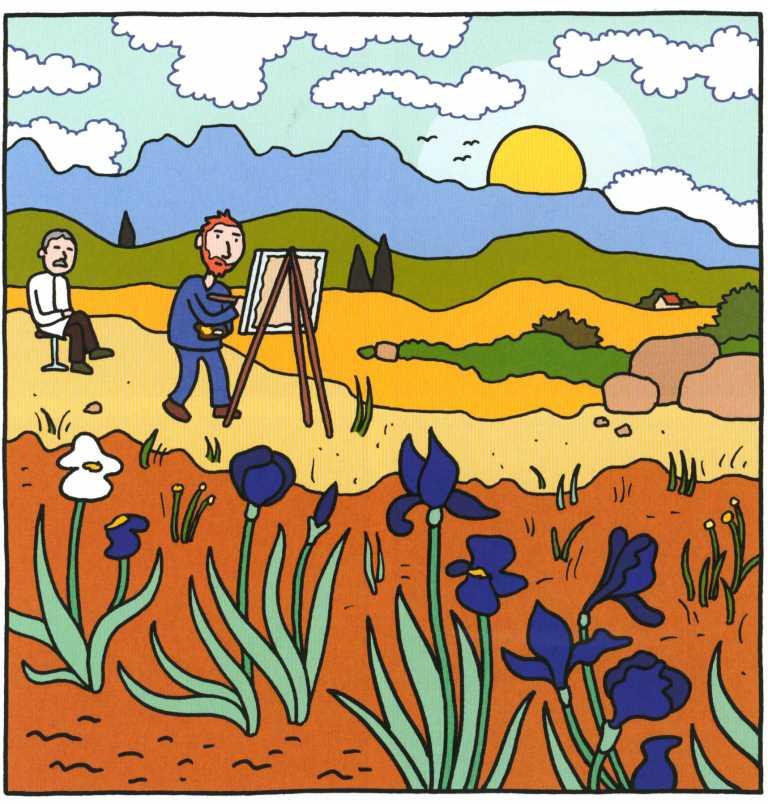 Reste la partie la plus spectaculaire de l’album : le graphisme ! Cela va faire débat dans le Landerneau ! Certains vont parler de génie pictural, d’autres d’arnaque graphique totale. Le débat est ouvert. Mais, on ne peut pas reprocher Barbara Stok d’avoir un style bien particulier, voire même une certaine ressemblance graphique avec le style de Van Gogh. Des couleurs vives comme Vincent, un style basique, minimaliste, enfantin, digne d’une histoire de « playmobils » pour faire dans la caricature extrême. Mais le dessin est en conséquence dépouillé, clair et surtout très lisible. On pourrait croire à première vue que cette histoire est faite pour des enfants en bas-âge mais on en est loin car ce livre nous fait réfléchir au statut de l’artiste et à la place de l’art dans notre monde de tous les jours.