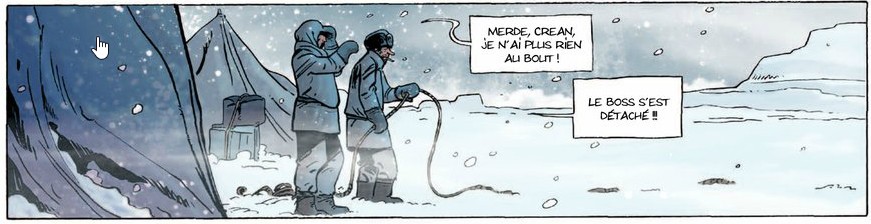 Tardi quant à lui, excelle dans les scènes d’horreur ! Comme les mots de Verney, son dessin est cru et direct. Membres arrachés, viscères dégoulinantes, bourbier inextricable, ruisseaux de sang, monceaux de cadavres, gueules cassées … le moindre détail de cet enfer est en image. Et les images sont grandes, comme s’il fallait que rien ne nous échappe ! Trois cases horizontales par planche, cela donne de la place pour le détail … détail qu’il faut chercher dans des cases de moins en moins colorées au fil du récit, à mesure de l’enlisement du conflit.