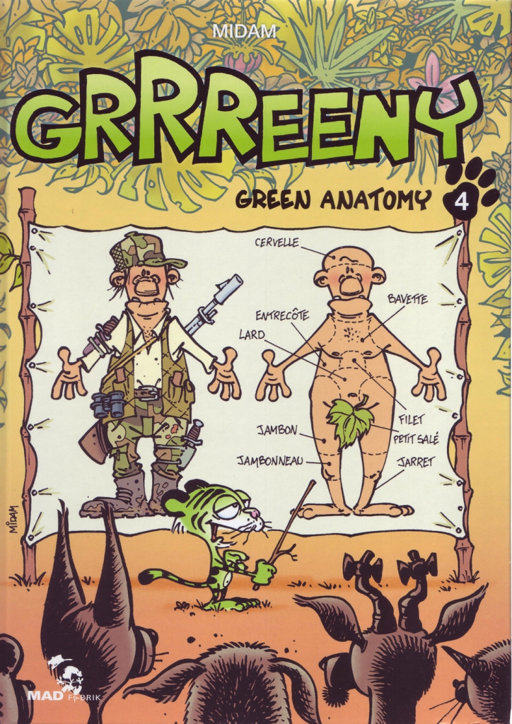 Devenu vert après avoir nagé dans un lac pollué Grrreeny est un tigre militant pour la santé de l’environnement. A sa manière détournée de nous sensibiliser Midam met en scène une ménagerie variée luttant au quotidien pour changer les mentalités et chasser les braconniers de leur résidence bien aimée.