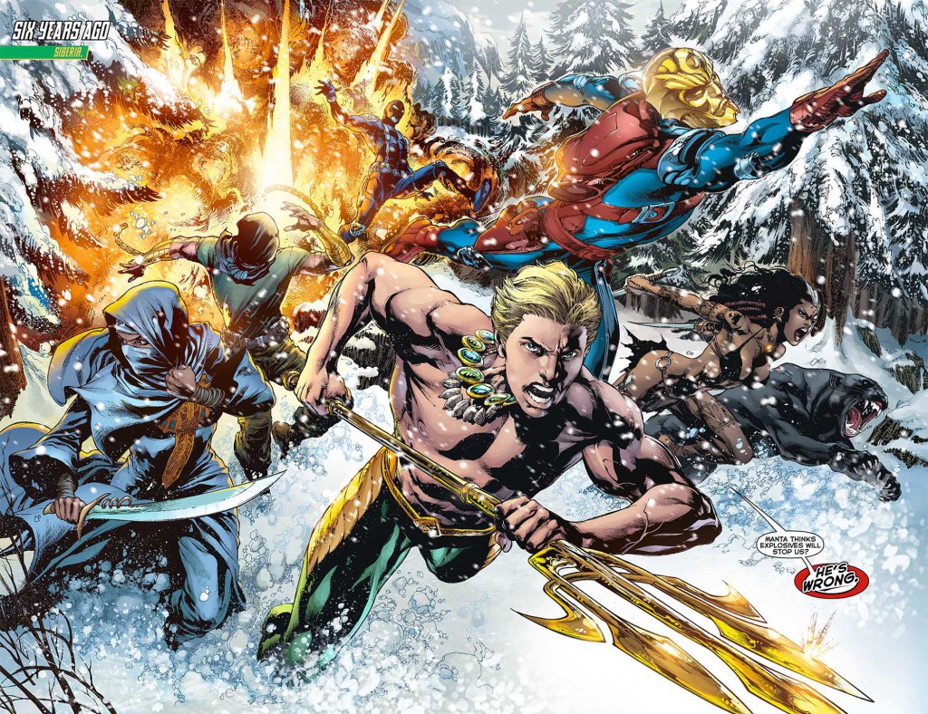 Les dessins sont superbes et ne souffrent aucunement du changement constant de dessinateurs. Chaque dessinateur ne travaillant que sur un personnage, Reis pour Aquaman, Gleason pour le Limier Martien, Syaf pour Hawkman et Hawgirl…. Le découpage est rythmé !! Il alterne pleines pages, double pages et découpes traditionnelles. Le mise en couleur est très réussie, mention particulière pour les cases où apparait le Lumière Blanche.